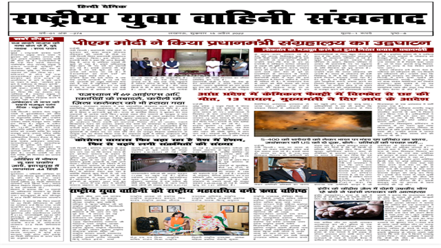 हिंदी दैनिक राष्ट्रीय युवा वाहिनी शंखनाद समाचार सम्पादक हिन्दू देव प्रकाश शुक्ला प्रबंध सम्पादक अभिषेक द्विवेदी