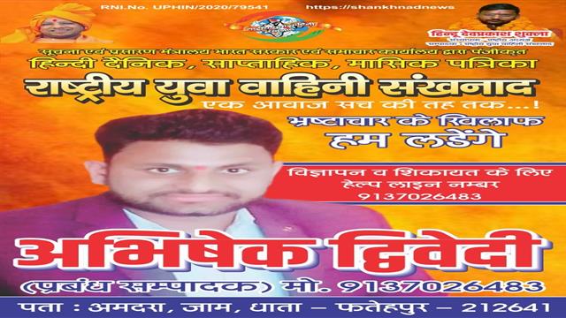 राष्ट्रीय युवा वाहिनी शंखनाद समाचार सम्पादक हिन्दू देव प्रकाश शुक्ला
