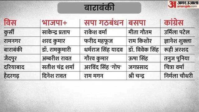 उत्तर प्रदेश विधानसभा चुनाव में पांचवें चरण का चुनाव प्रचार आज समाप्त हो गया। इस चरण में 11 जिलों की 61 सीटों पर रविवार को मतदान होगा। जिन जिलों में चुनाव होने हैं, उनमें अमेठी, अयोध्या, बहराइच, बाराबंकी, चित्रकूट, गोंडा, कौशांबी, प्रतापगढ़, प्रयागराज, श्रावस्ती और सुल्तानपुर शामिल हैं। इन 61 सीटों पर 693 प्रत्याशी अपनी किस्मत आजमा रहे हैं। हालांकि, सीधा मुकाबला भाजपा, समाजवादी पार्टी, बहुजन समाज पार्टी और कांग्रेस के बीच है। आइए जानते हैं इन चारों दलों ने कहां से किसे उम्मीदवार बनाया है?