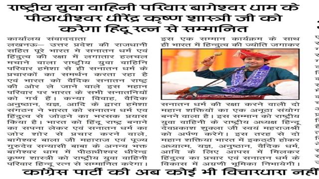 राष्ट्रीय युवा वाहिनी राष्ट्रीय अध्यक्ष/ राष्ट्रीय युवा वाहिनी शंखनाद समाचार के सम्पादक हिन्दू देव प्रकाश शुक्ला, प्रबंध सम्पादक अभिषेक द्विवेदी