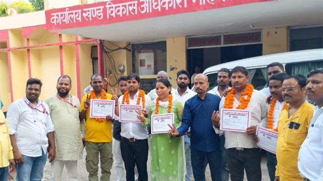 "उत्तर प्रदेश पंचायती राज ग्रामीण सफाई कर्मचारी संघ जनपद शाखा लखनऊ की ब्लाक कार्यकारिणी 2024,-25 का द्विवार्षिक चुनावी अधिवेशन आज दिनांक :- 24/09/2024 को पूर्व प्रस्तावित कार्यक्रम के तहत विकासखंड खंड मोहनलालगंज ब्लाक के सभागार में संघ चुनाव अधिकारी -श्री मयंक /जिला मंत्री,उनके साथ रहे सह चुनाव अधिकारी धर्म प्रकाश कुशवाहा,एवं राजू भारती, तथा संदीप कुमार द्वारा कुल 05 पदों पर नामांकन प्रक्रिया प्रारंभ कराते हुए संपन्न कराया गया जिसमें 1-ब्लाक अध्यक्ष 2-ब्लाक मंत्री 3- ब्लाक कोषाध्यक्ष व ब्लाक संप्रेक्षक पद पर मतदान प्रक्रिया कराई गई जबकि संगठन मंत्री पद पर श्री मती सोनू निर्विरोध निर्वाचित हुई । ब्लाक अध्यक्ष-पद पर धरमचंद को 54 मत प्राप्त हुए उनके प्रतिद्वंद्वी श्री सुशील कुमार को 37 मत मिले जबकि 2 अवैध मत रहें। ब्लाक मंत्री पद पर - नवल किशोर ने 47 मत जबकि विमल कुमार यादव को 43 मत पड़े 03 मत अवैध रहे । ब्लॉक कोषाध्यक्ष - हिमांशु त्रिपाठी को 54 मत जबकि उनके प्रतिद्वंद्वी अरविंद कुमार को 35 मत मिले 04 अवैध मत रहे जबकि ब्लाक संप्रेक्षक पद पर अनूप कुमार को 47 मत तथा कामता प्रसाद वर्मा को 43 मत मिले 03 मत अवैध रहे । सभी पदों पर कुल 93 मत पड़े। इस प्रकार अध्यक्ष पद पर श्री धर्म चंद्र, मंत्री पद पर श्री नवल किशोर, कोषाध्यक्ष पर पर हिमांशु त्रिपाठी,संगठन मंत्री पद पर श्री मती सोनू ( निर्विरोध) तथा संप्रेक्षक पद पर अनूप कुमार निर्वाचित हुए। सभी निर्वाचित पदाधिकारियों को चुनाव अधिकारी (मयंक) द्वारा निर्वाचित घोषित करते हुए प्रमाण पत्र वितरित किया गया ।तथा पद एवं गोपनीयता की शपथ भी दिलाई गई। इस प्रकार निर्वाचन प्रक्रिया शांतिपूर्ण तरीके से समस्त कर्मचारियों की उपस्थिति में शांति पूर्ण तरीके से सम्पन्न हुई।*उक्त चुनावी प्रक्रिया संघ के जिला अध्यक्ष राम किशन एवं जिला मंत्री मयंक के निर्देशों के क्रम में संपन्न कराई गई। सभी नव - निर्वाचित ब्लाक कार्यकारिणी को संघ के (जिला अध्यक्ष - रामकिशन) (जिला मंत्री - मयंक)(जिला कोषाध्यक्ष - धर्म प्रकाश कुशवाहा)(जिला संगठन मंत्री - मनोज भारती) ( जिला संप्रेक्षक- श्री भगवान (जिला कार्यवाहक अध्यक्ष/मंडल अध्यक्ष पवन वाल्मीकि)( मंडल मंत्री प्रवीण भारती) (जिला वरिष्ठ उपाध्यक्ष राजू भारती) जिला उपाध्यक्ष वेद प्रकाश, विनय कुमार, जिला संयुक्त मंत्री संदीप कुमार, जिला उपाध्यक्ष सनी सिंह , जिला उपाध्यक्ष नरेंद्र गौतम एवं जिला उपाध्यक्ष शिवराज सहित समस्त जिला कार्यकारिणी ने जीत की हार्दिक बधाई एवं शुभकामनाएं दी।
